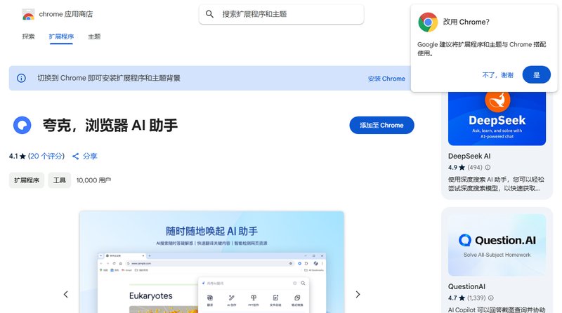 点击右上角“添加到Chrome”,并将夸克固定至工具栏。