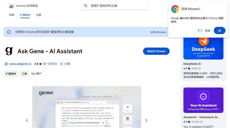 Ask Gene 是一个基于 GPT-4 和 DeepSeek-V3 的 AI 助手,旨在帮助用户更高效地处理各种任务。它可以在任何网页上无缝使用,提供智能搜索、文章摘要、翻译、写作等功能,完全免费。