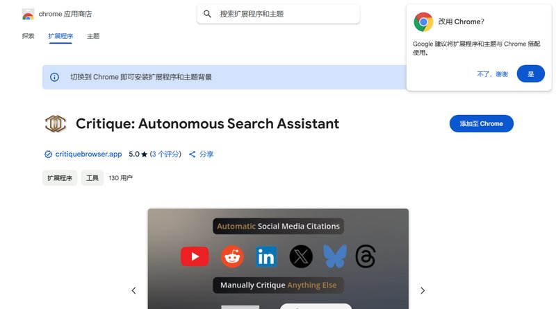 Critique: Autonomous Search Assistant 是一款 Chrome 扩展程序,提供实时事实核查、自动提示未经验证的信息、与页面聊天等功能,帮助用户在浏览网页时获取可靠的信息。