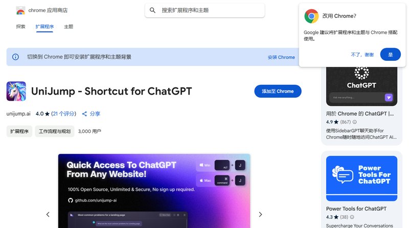 UniJump 是一个免费的 ChatGPT 快捷方式,提供超级功能,无需注册即可使用。