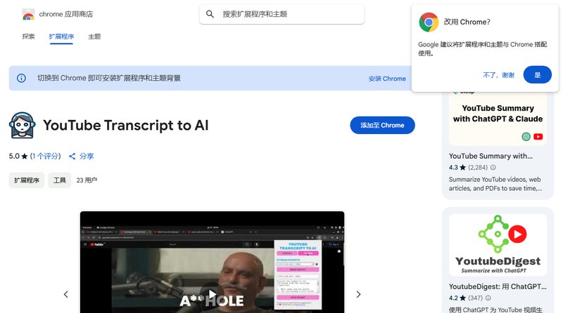 YouTube Transcript to AI 是一款 Chrome 扩展程序,能够将 YouTube 视频的转录内容发送到 ChatGPT 或 Claude,帮助用户从视频中获取更多洞察。